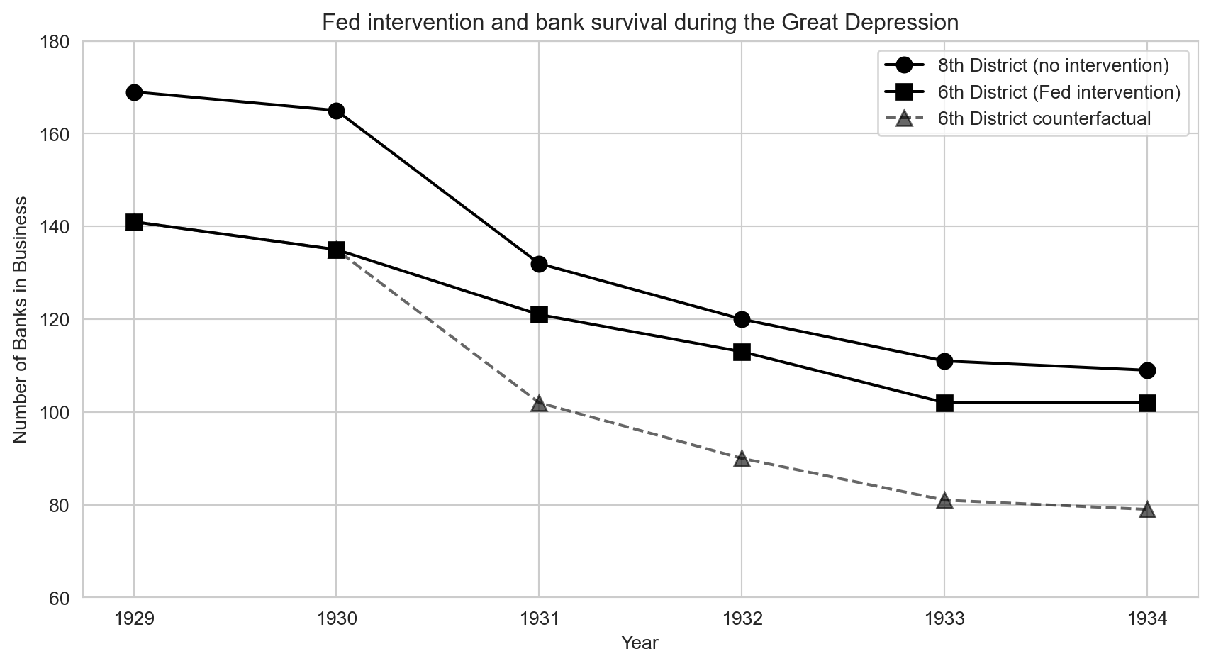 print(f"\nDD estimate (1931 vs 1930): {dd} banks saved by Atlanta Fed intervention")